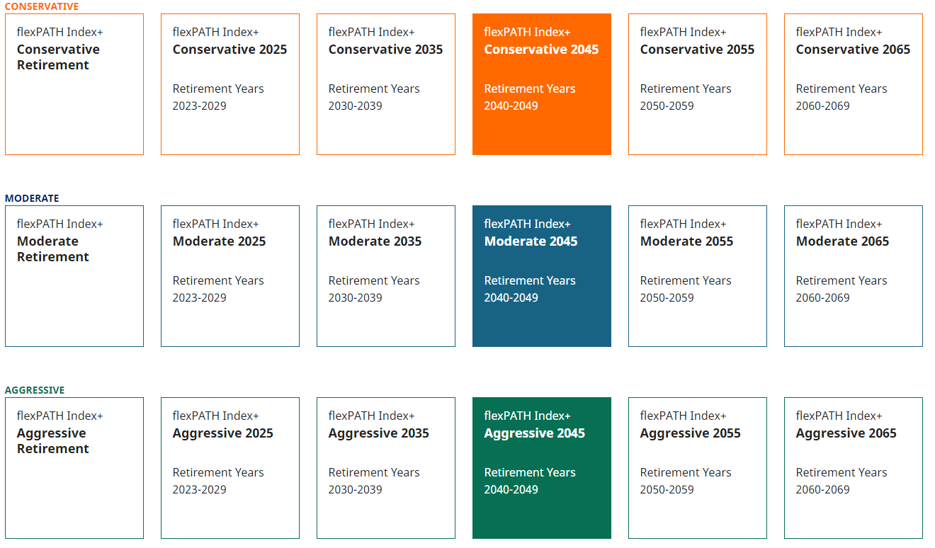 The glidepath needs of all plan participants are addressed with the availability of a conservative, moderate and aggressive glidepath.